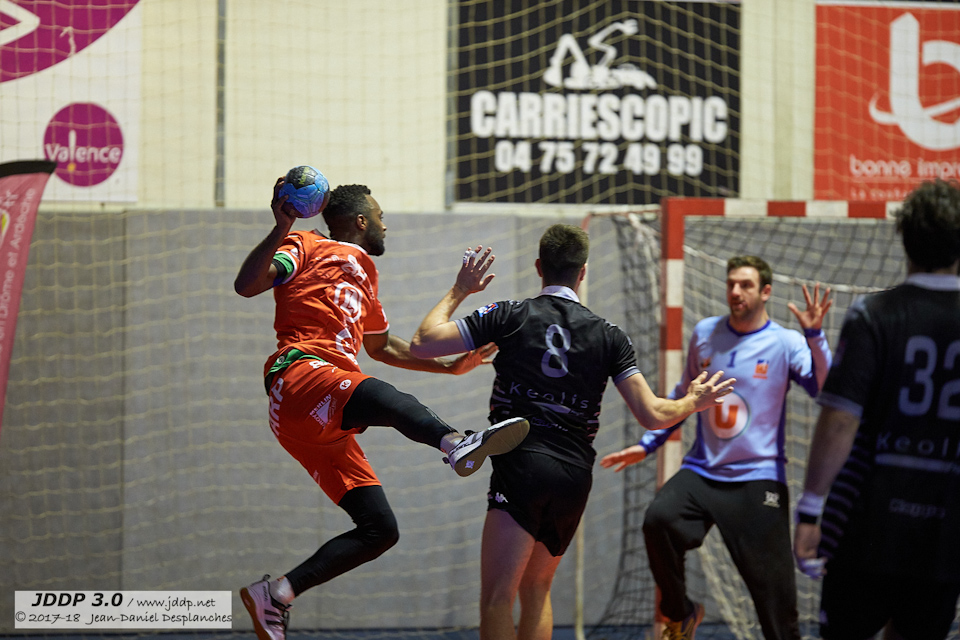 Retrouvez les photos du match de Nationale 1 Masculine / phase de Play-offs 2017-18 Valence Handball (VHB) versus Angers Noyant Handball Club (ANHBC) (score final 26 – 30) du vendredi 23-MAR-18 (J4) au Palais des Sports Mendès-France (Valence) .