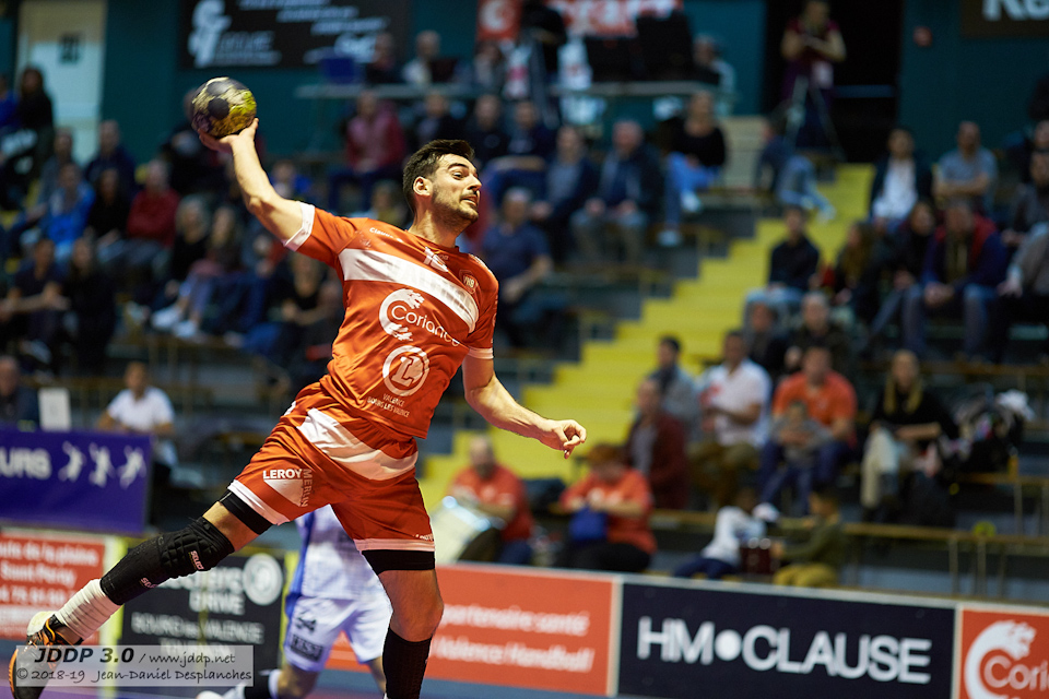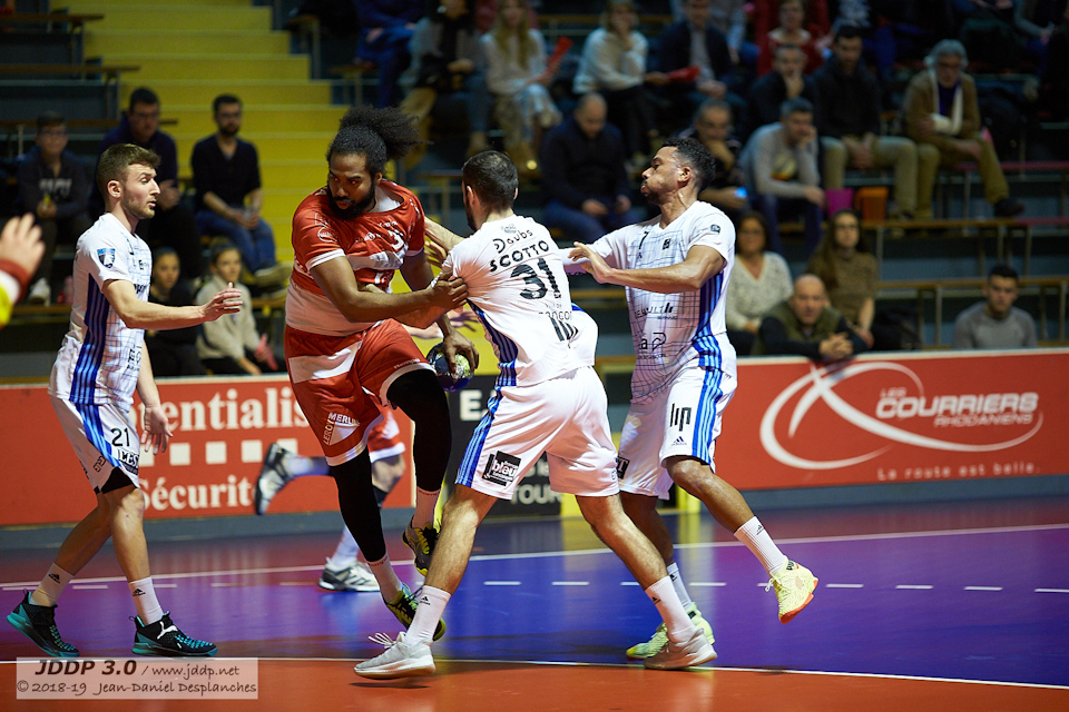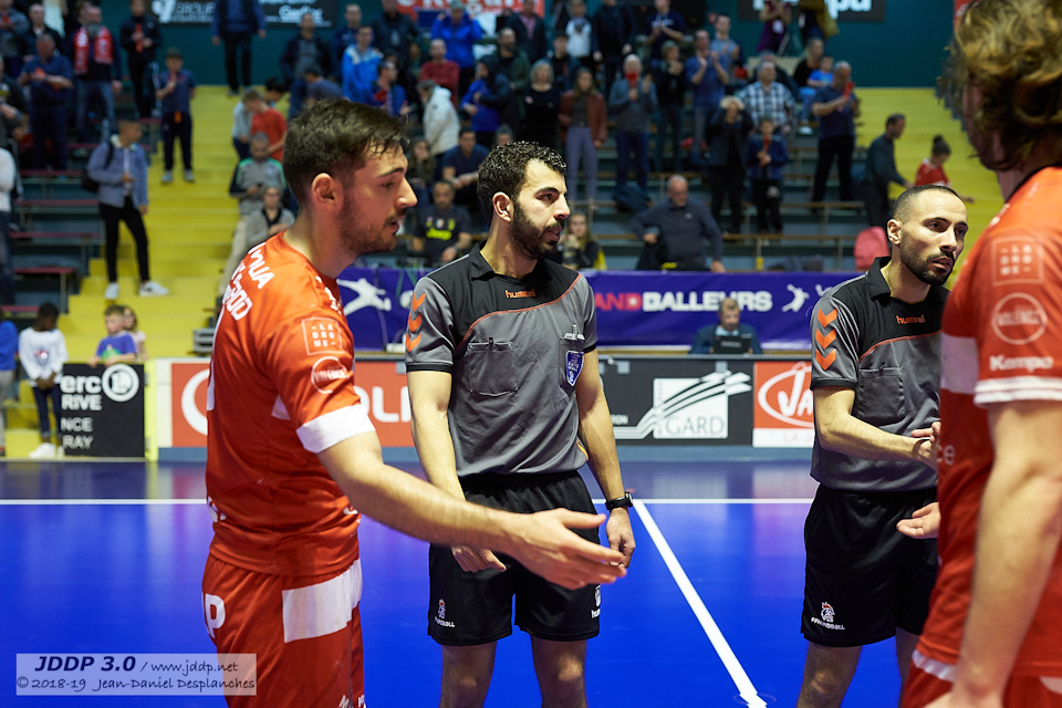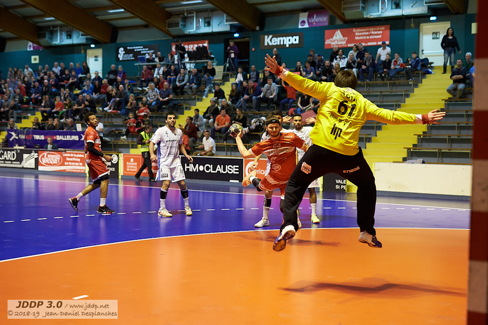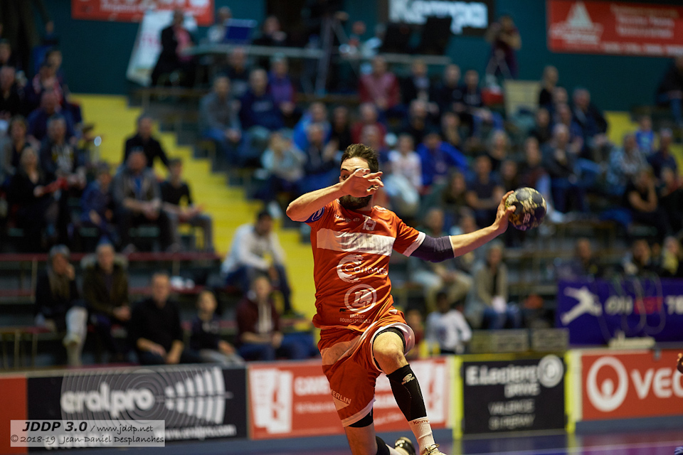 Retrouvez les photos du match de Nationale 1 Masculine / phase de Play-offs 2018-19 / Valence Handball (VHB) versus Grand Besançon Doubs Handball (GBDH) (score final 26 – 25) du samedi 02-MAR-19 (Play-offs / J1) au Palais des Sports Mendès-France (Valence) .