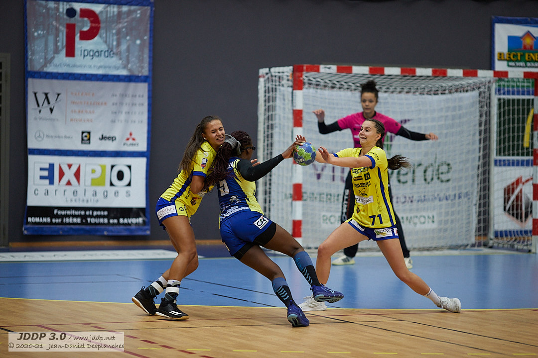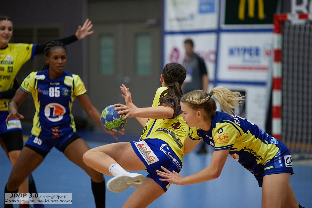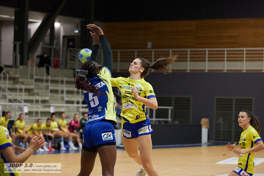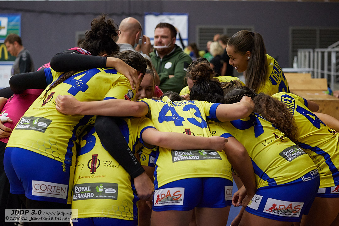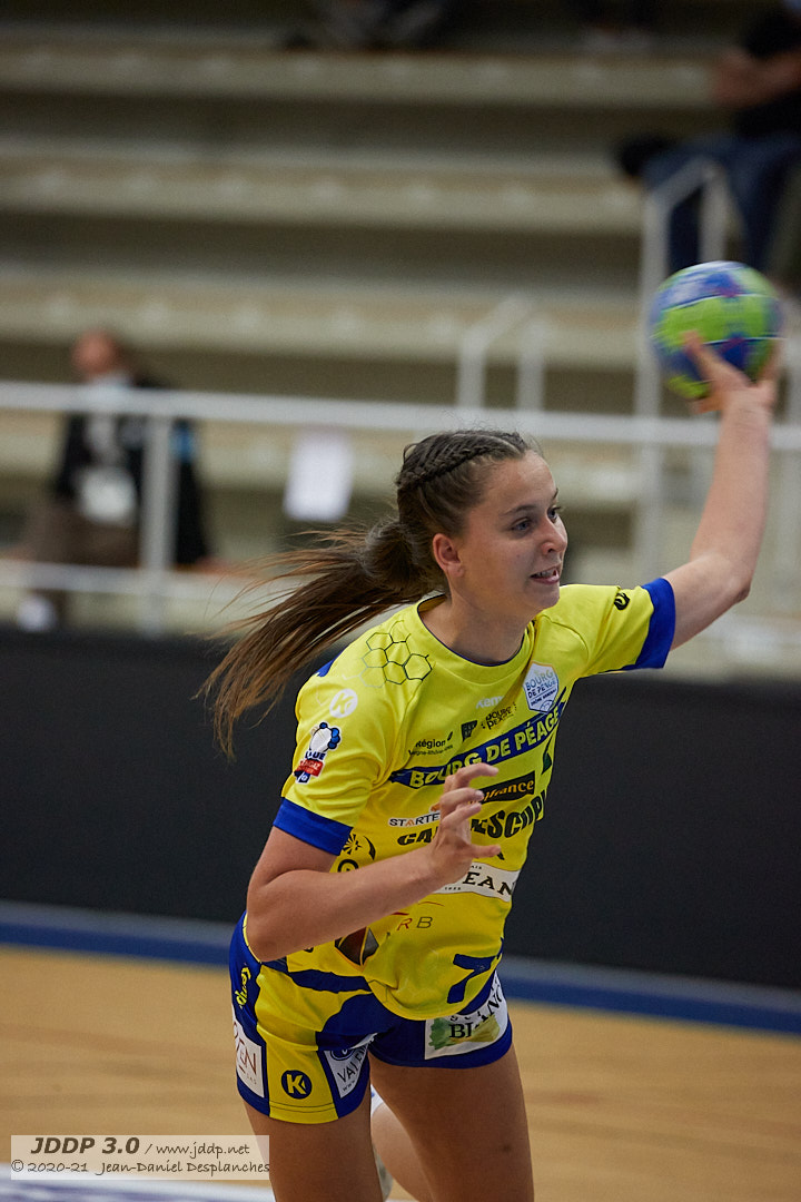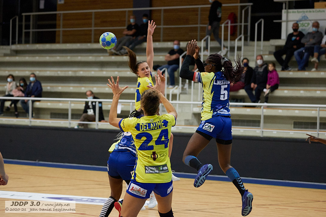 Retrouvez les photos du match de Nationale 1 Féminine de Handball (N1F) / 2020-21 – Poule 8 – J3 / Bourg-de-Péage Drôme Handball versus Blanzat Sport Montluçon Handball (BSM), score final 24 – 28, du samedi 17-OCT-20 au Complexe Vercors.