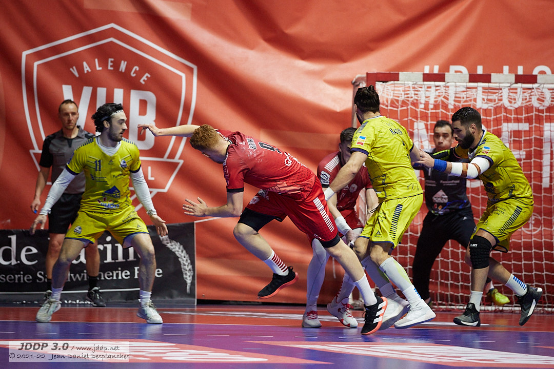 Retrouvez les photos de ProLigue (D2) Masculine / Saison 2021-22 – J20 / Valence Handball (VHB) versus Dijon Métropole Handball (DMH) (score final 30 – 29) du vendredi 04-MAR-22 dans sa salle de Pierre Mendès-France devant un large public.