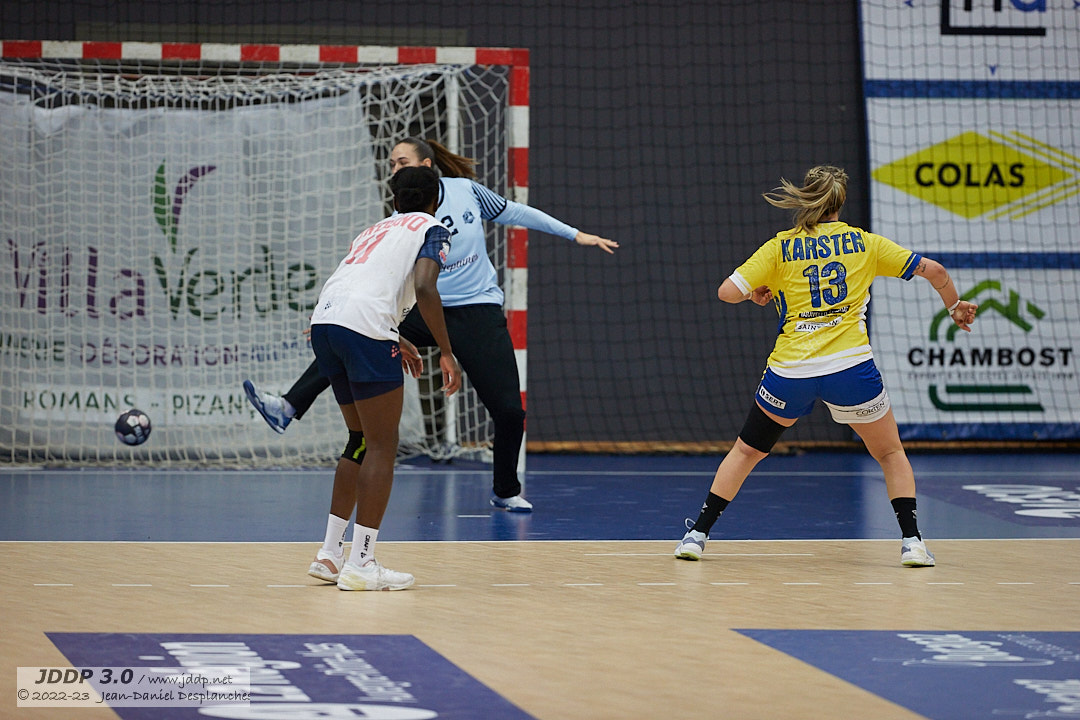 10 buts de Lucie Modenel (#10) et 14 arrêts d’Emma Perche (#70). Le travail pendant la trève internationale a porté ses fruits.