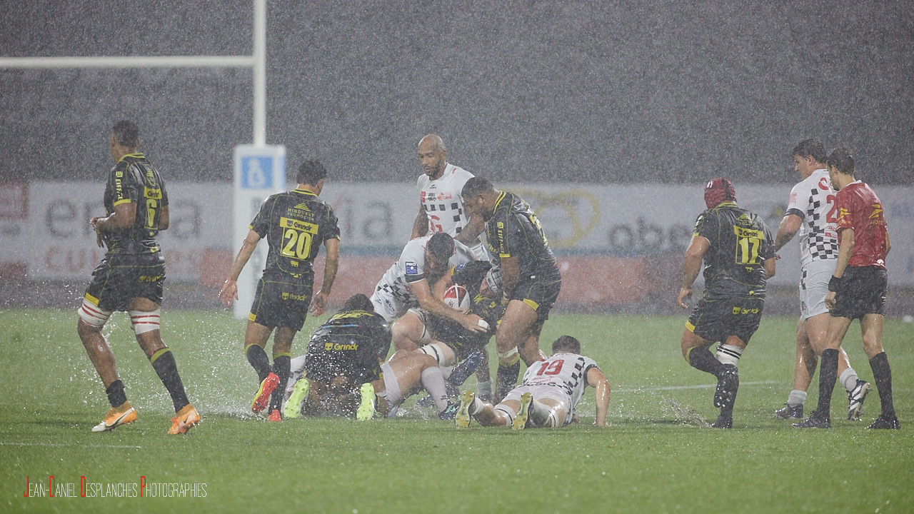 Sous des trombes d’eau, les Damiers ont ajoutés 3 essais en 2e mi-temps sans rien lâcher.